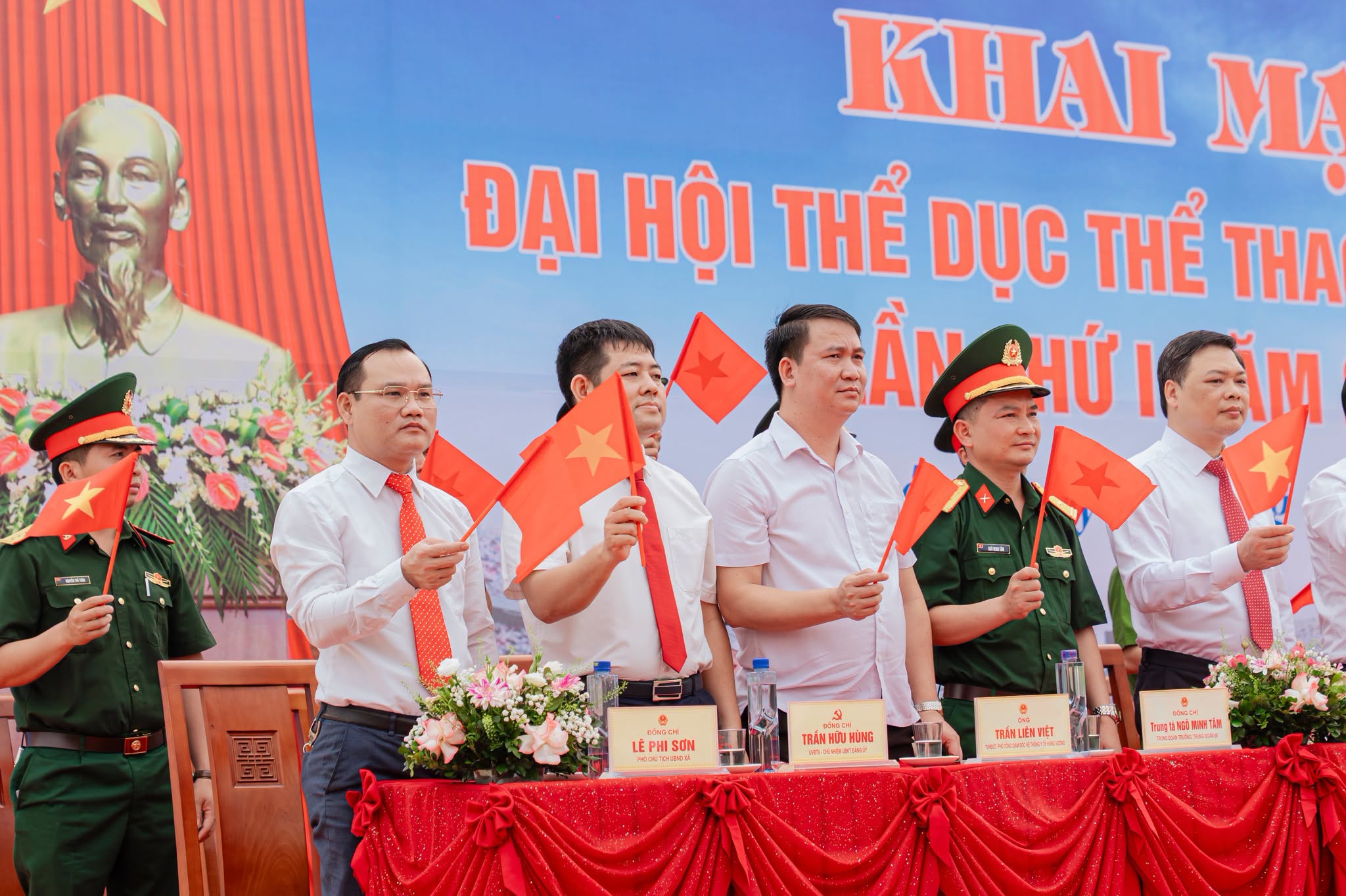 Dự lễ khai mạc có đồng chí Nguyễn Hoàng Minh – Bí thư Đảng ủy, Chủ tịch HĐND xã; đồng chí Hà Hải Long – Phó Bí thư Đảng ủy, Chủ tịch UBND xã; đồng chí Cao Thị Ngọc Mai – Phó Bí thư Thường trực Đảng ủy; các đồng chí trong Ban Thường vụ Đảng ủy; Ban chấp hành Đảng bộ xã; đại diện lãnh đạo Sư đoàn 316, Trung đoàn 98; các doanh nghiệp cùng toàn thể cán bộ, công chức viên chức và nhân dân trên địa bàn xã
