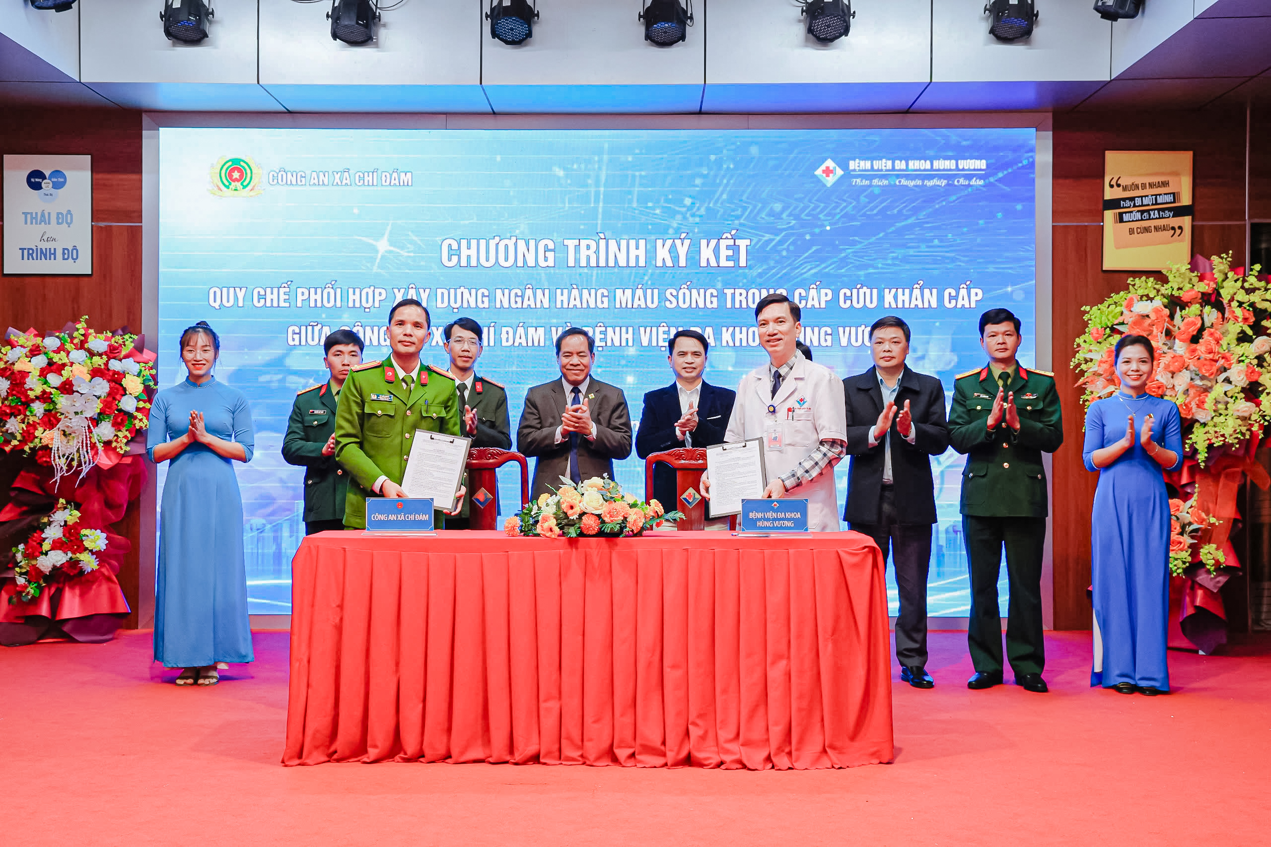 Chiều ngày 09/01/2026, Chương trình ký kết Quy chế phối hợp xây dựng “Ngân hàng máu sống” giữa Bệnh viện Đa khoa Hùng Vương và Công an xã Chí Đám đã diễn ra thành công tốt đẹp, đánh dấu một bước đi ý nghĩa trong công tác phối hợp đảm bảo an sinh xã hội, chăm sóc và bảo vệ sức khỏe Nhân dân.