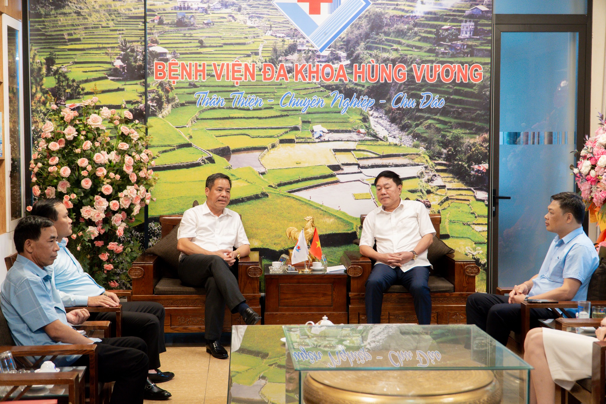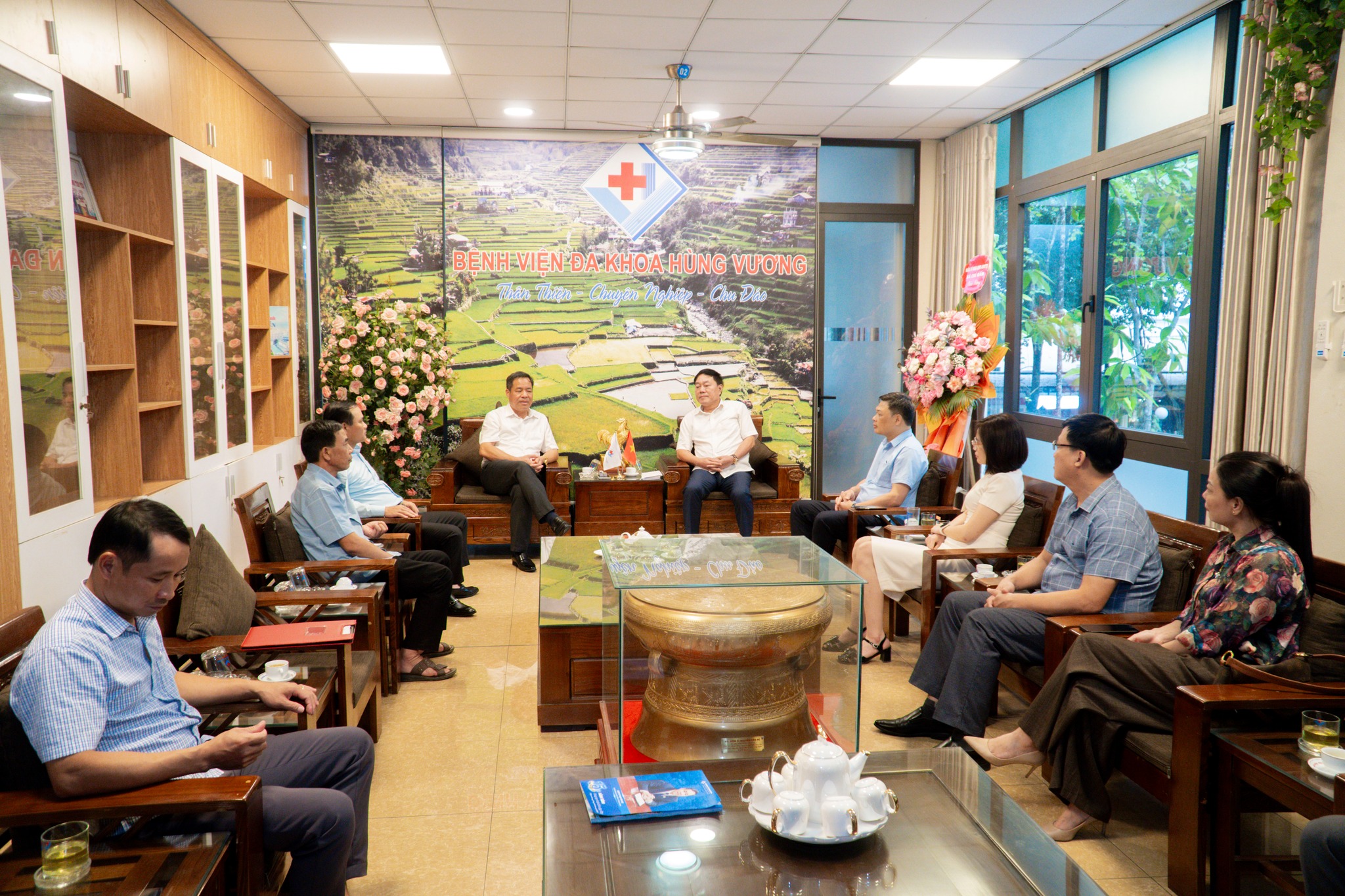 Nhân kỷ niệm Ngày Doanh nhân Việt Nam (13/10), đại diện Lãnh đạo xã Chí Đám đã đến thăm và tặng hoa chúc mừng Ban lãnh đạo Bệnh viện Đa khoa Hùng Vương – tập thể luôn tâm huyết, tận tụy vì sự nghiệp chăm sóc sức khỏe nhân dân và phát triển kinh tế địa phương.