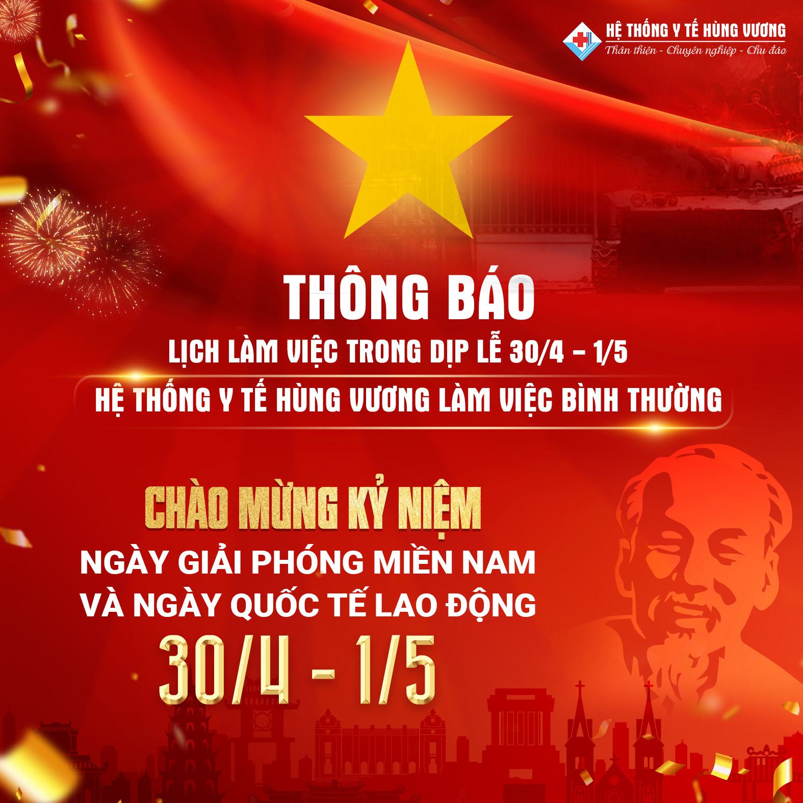 Dù là ngày thường hay ngày lễ, Hệ thống Y tế Hùng Vương vẫn luôn ở đây – sẵn sàng đồng hành cùng bạn và gia đình.